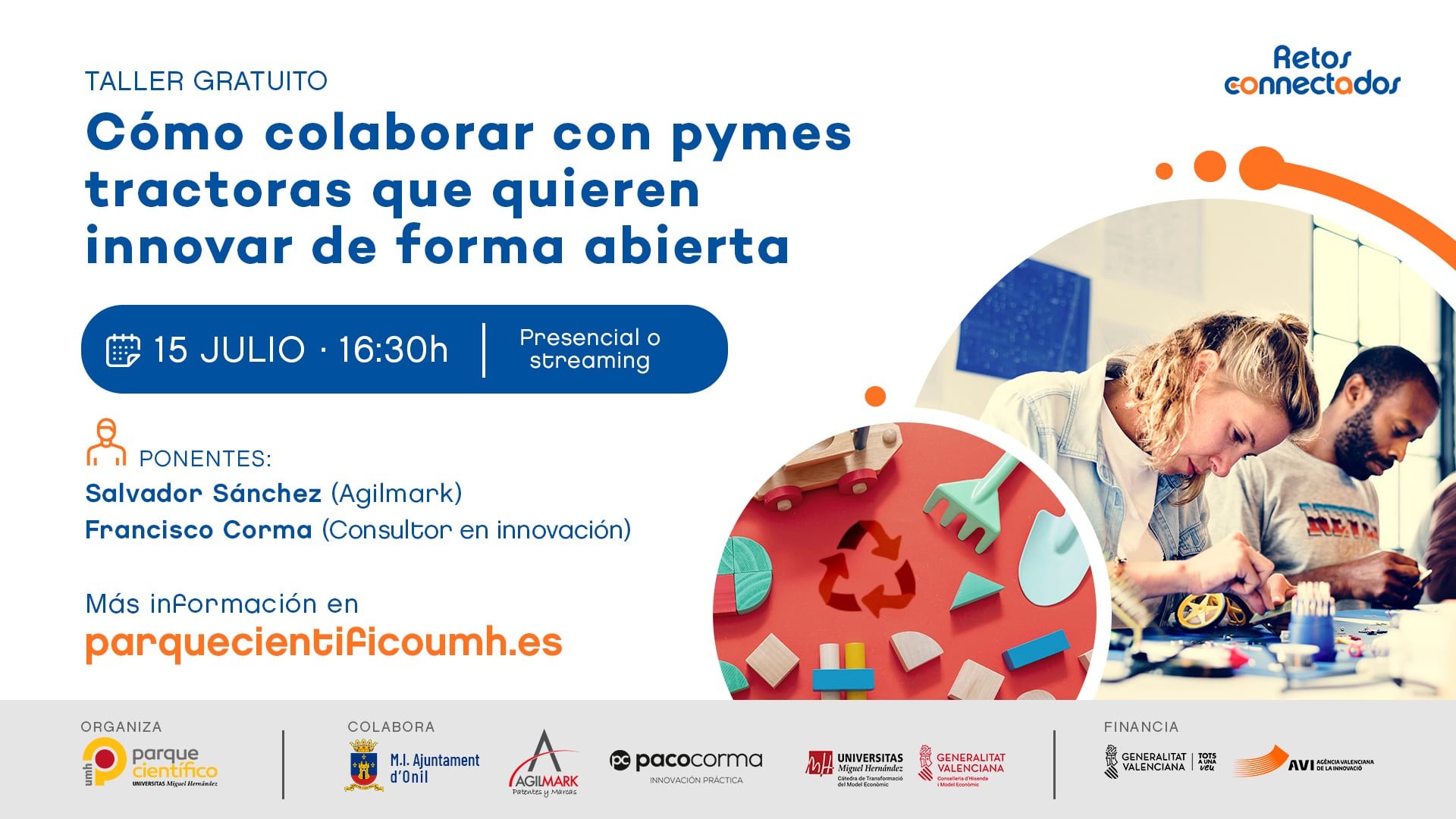 El Parque Científico de la Universidad Miguel Hernández (PCUMH) de Elche ha organizado el jueves 15 de julio la jornada “Cómo colaborar con pymes tractoras que quieran innovar de forma abierta”. Expertos del sector serán los encargados de impartir esta sesión, que comenzará a las 16:30 horas y que se dirige, principalmente, a spin-offs, EBTs, grupos de investigación, centros tecnológicos, así como a empresas, start-ups y estudiantes. Los interesados en asistir al evento podrán hacerlo de manera presencial, previa inscripción en el formulario, o de manera online, ya que la jornada se retransmitirá en directo a través de Youtube desde el edificio Quorum III del campus de Elche de la UMH. La asistencia es gratuita y está abierta al público en general, previa inscripción en www.parquecientificoumh.es/es/como-colaborar-con-pymes-tractoras-que-quieran-innovar-de-forma-abierta.