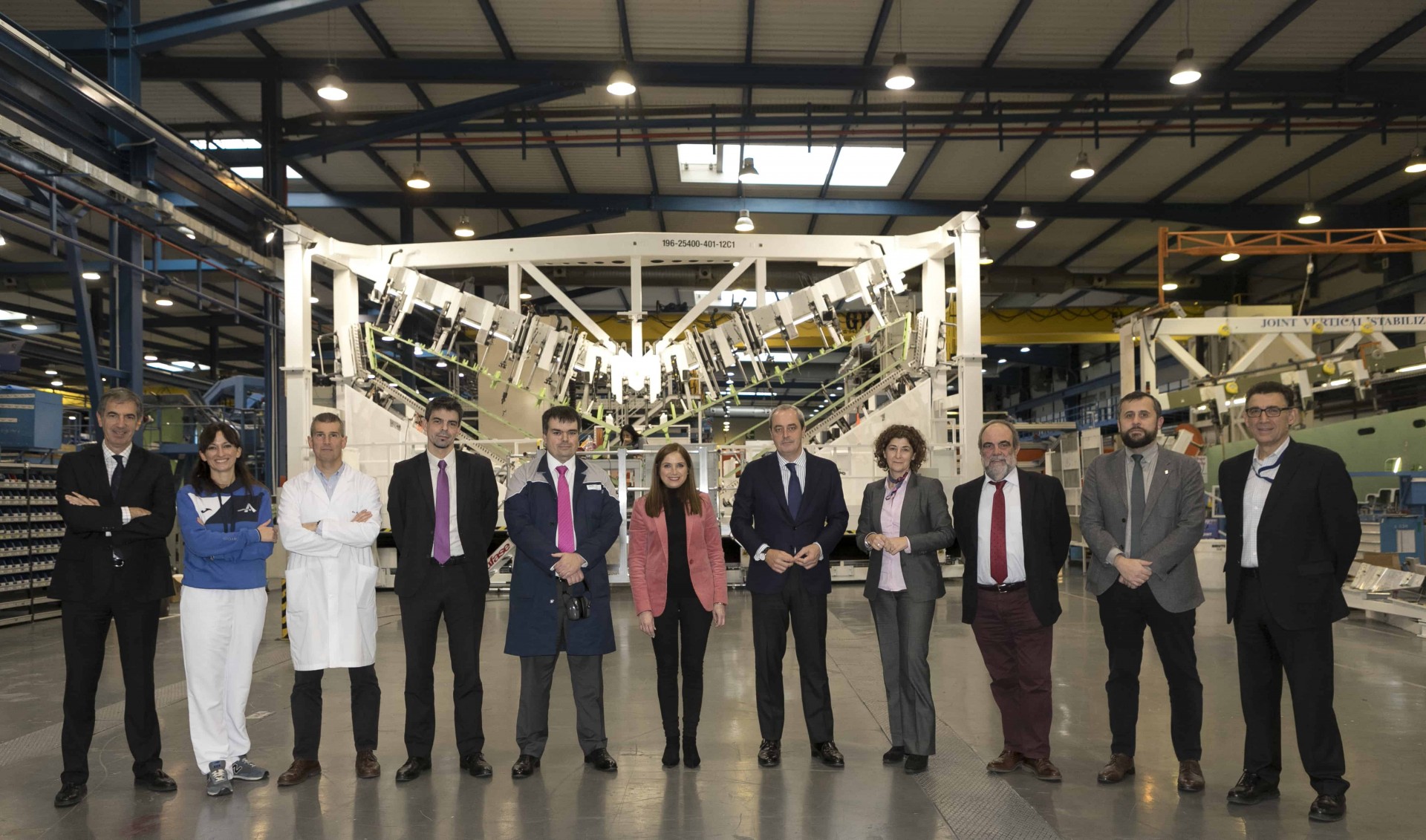 María Jesús San José, Consejera de Trabajo y Justicia del Gobierno Vasco, ha visitado la empresa AERNNOVA, donde acompañada por el Secretario General de la compañía Hipólito Suarez, ha conocido y puesto en valor el proyecto de PRL “AernnovaZaindu”
