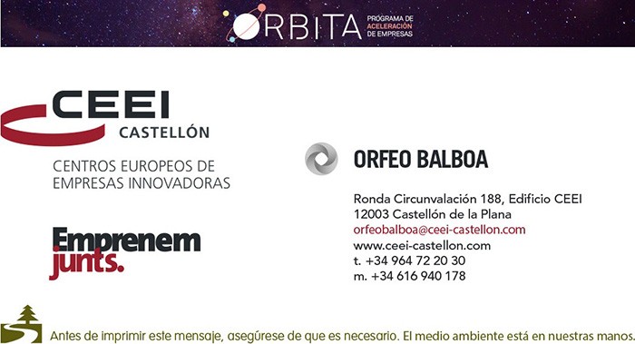 Creado por Diputación de Castellón y el CEEI Castellón, Órbita es un programa de aceleración de empresas que identifica proyectos de alto potencial y los apoya en consolidar su crecimiento, facilitándoles el acceso a la financiación e inversión.