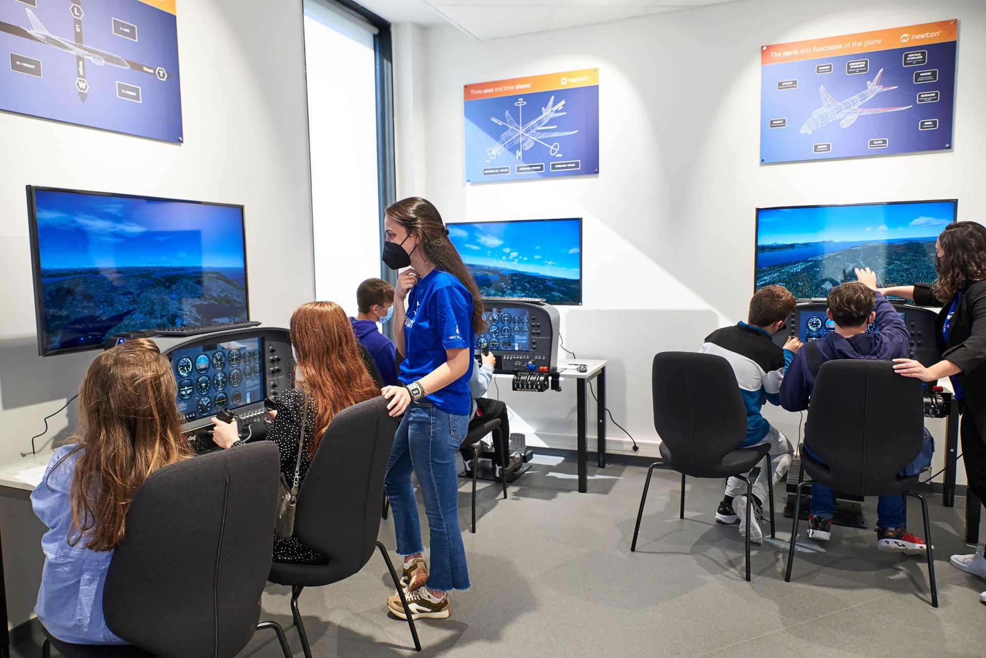 El Aula está abierta los viernes durante el curso escolar en horario de 10:00 a 14:15 horas y en ella se están desarrollando dos actividades diferentes. La primera es “Volando con números: una aventura aérea”, en la que el alumnado, ayudado por un equipo de formadores y de instructores de vuelo, recibe una misión de rescate y debe planificar y crear un plan de vuelo y cumplir su misión en simuladores avanzados; y la segunda es una actividad complementaria de iniciación al vuelo y construcción de drones.