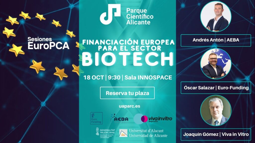 Programa: 9:30 h. Bienvenida. Esteban Pelayo. Gerente del PCA 9:50h. Andrés Antón. Presidente de AEBA Bioteconología y CEO de Bioarray 10:20h. Oportunidades europeas de financiación para el sector salud y biotecnología Repaso de todos los…