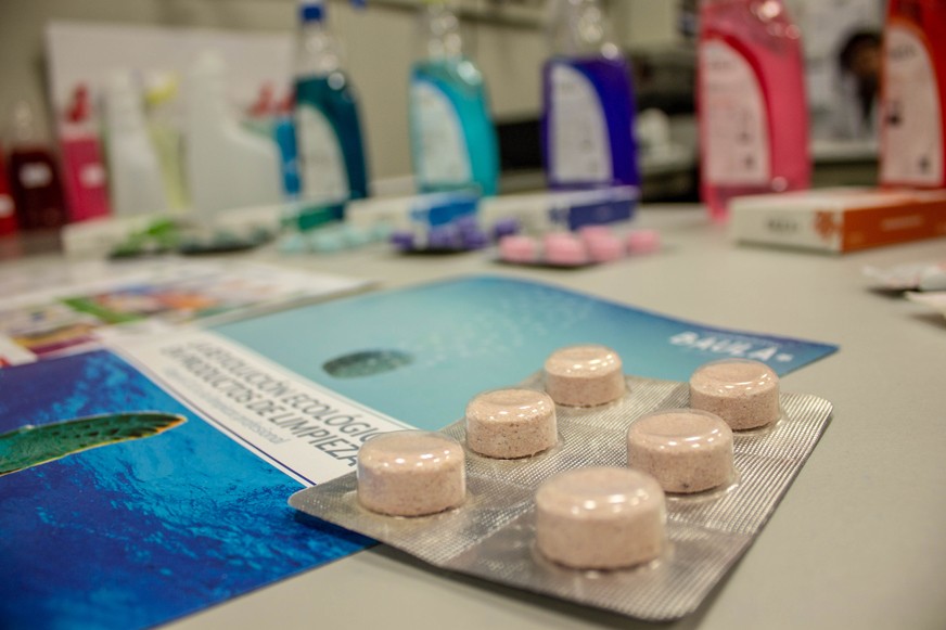 Tras cinco años de intenso trabajo de investigación en el Parc Científic de Barcelona, la compañía ha conseguido desarrollar formulaciones para producir cualquier producto de limpieza ecológico en formato comprimido en pastillas monodosis, altamente efervescentes y de fácil disolución. Los limpiadores Baula tienen la certificación Ecocert, y reducen hasta un 40% los costes directos, y hasta un 90% los indirectos, de la limpieza profesional, con una eficacia igual o superior –validada por Applus+ y Eurofins– a la de las propuestas equivalentes no ecológicas líderes del mercado.