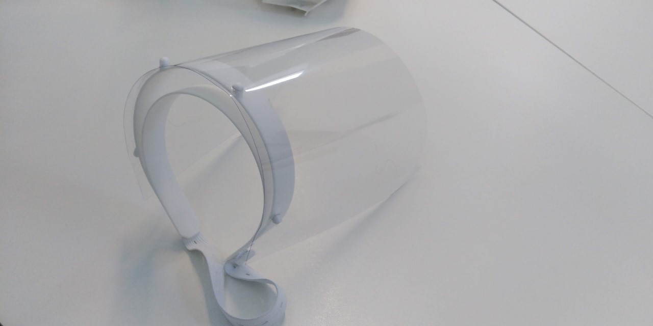 El componente principal de la pantalla ha sido fabricado a través de tecnologías de impresión 3D de sinterizado plástico con los equipos industriales disponibles en las sedes de los miembros del consorcio. Posteriormente, el dispositivo se dota de un plástico protector y de una goma de fijación trasera. En el componente impreso se incluye el mensaje “Orgullosos de nuestros sanitarios” con el que se ha querido transmitir el apoyo de la sociedad al personal sanitario.