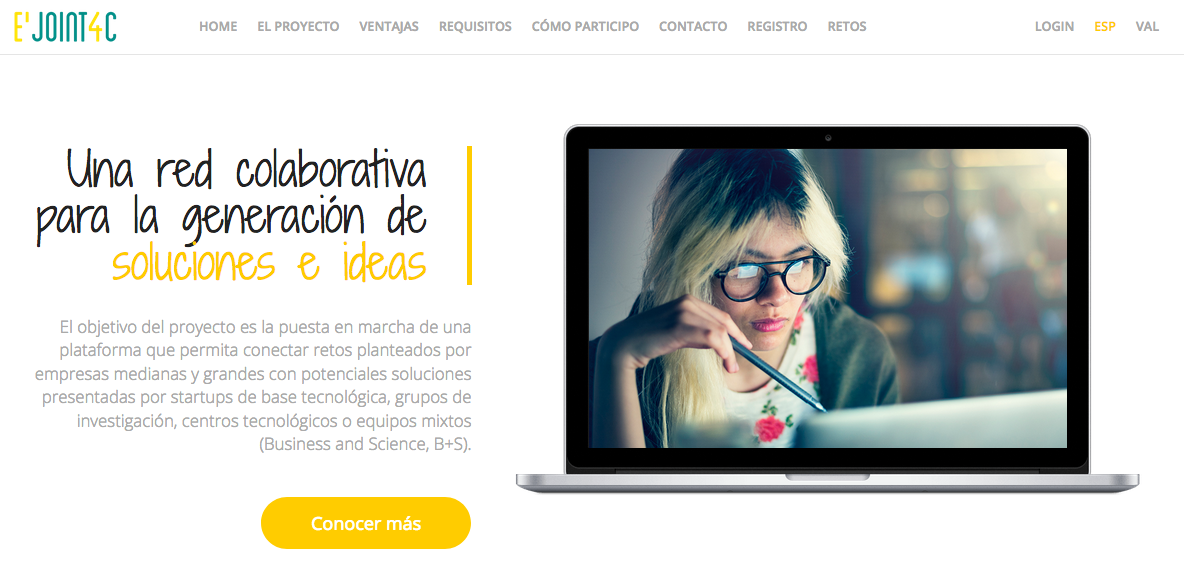 El Parc Científic, Tecnològic i Empresarial de la Universitat Jaume I de Castellón ha lanzado la plataforma e’Joint4Challenge, una herramienta online que tiene como objetivo conectar las necesidades de medianas y grandes empresas con el talento humano, la innovación y la tecnología existente en start-ups, centros tecnológicos, grupos de investigación y empresas de base tecnológica vinculadas al entorno de parques científicos y tecnológicos de alcance nacional.
