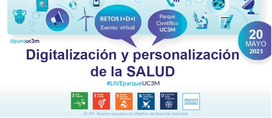 En esta jornada de Retos en I+D+i 2021, profundizaremos sobre el reto de la digitalización y la personalización de la salud, dando visibilidad a algunos de los nuevos avances tecnológicos y sociales que se ponen a nuestro servicio para renovar el Sistema de Salud y Bienestar. Contaremos para ello con el conocimiento de investigadoras e investigadores de la UC3M y las propuestas innovadoras de las instituciones y empresas participantes.