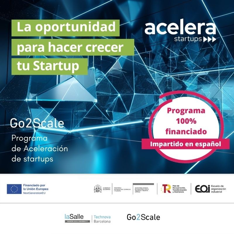 La Salle Technova Barcelona continúa con las inscripciones para el programa de aceleración Go2Scale, centrado en las áreas de Contech e Industria Digital, totalmente financiado por la Unión Europea Next Generation EU del Plan de Recuperación y Resiliencia del Gobierno de España a través de la Escuela de Organización Industrial.