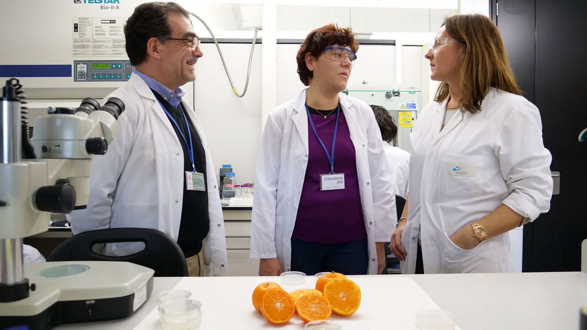 Los carotenoides son compuestos que dan el color característico a muchos frutos y productos vegetales, como los cítricos, pero además de ello, tienen importantes propiedades nutricionales y beneficiosas para nuestra salud. Los investigadores Lorenzo Zacarías y María Jesús Rodrigo, del Instituto de Agroquímica y Tecnología de los Alimentos (IATA-CSIC), situado en el Parc Científic de la Universitat de València, llevan más de una década estudiándolos. En concreto, su última investigación pone el foco de atención en la beta-criptoxantina. “Este pigmento se acumula en muy pocos productos vegetales, entre ellos la mandarina, y además de ser pro vitamina A, parece tener ciertas propiedades antioxidantes que queríamos demostrar. Para ello, necesitábamos un modelo animal donde validar su funcionalidad y lo hemos conseguido trabajando conjuntamente con la empresa Biopolis, ubicada también en el Parc Científic”, explica Zacarías. “Suministrado al Caenorhabditis elegans, un nematodo que comparte con los humanos un 40% de sus genes, se corrobora ese papel antioxidante y además se observa que reduce un 30% la grasa corporal del gusano”, explica Patricia Martorell, investigadora de la empresa biotecnológica.