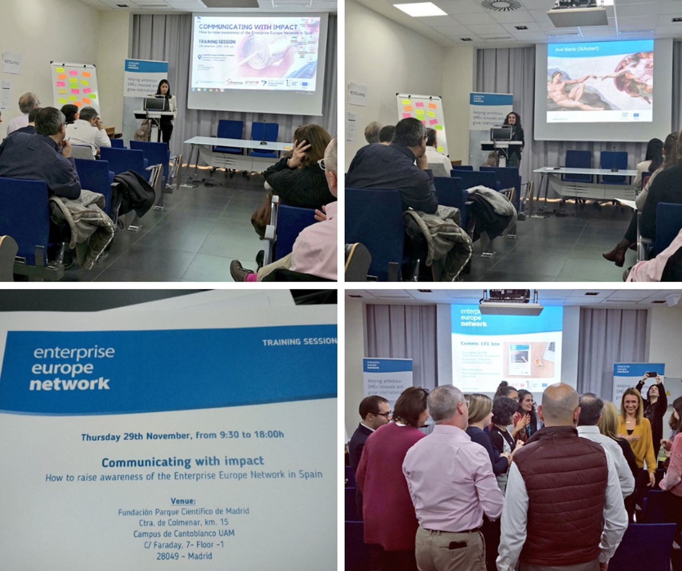 La sesión, que ha reunido a 25 asistentes, ha concluido con la presentación de buenas prácticas de comunicación de los siguientes socios de la Enterprise Europe Network en España: Ignacio Vilela de AEDHE (EEN madrimad), Sergio Pérez García de UNAV (EEN ACTIS), Elena Cortés de REDIT (EEN Seimed), Gemma García Bertrana de ACCIÓ (EEN Catcim), Antonio Merayo de FICYT (EEN GalacteaPlus) y Nuria Villén de Agencia IDEA (EEN CESEAND).