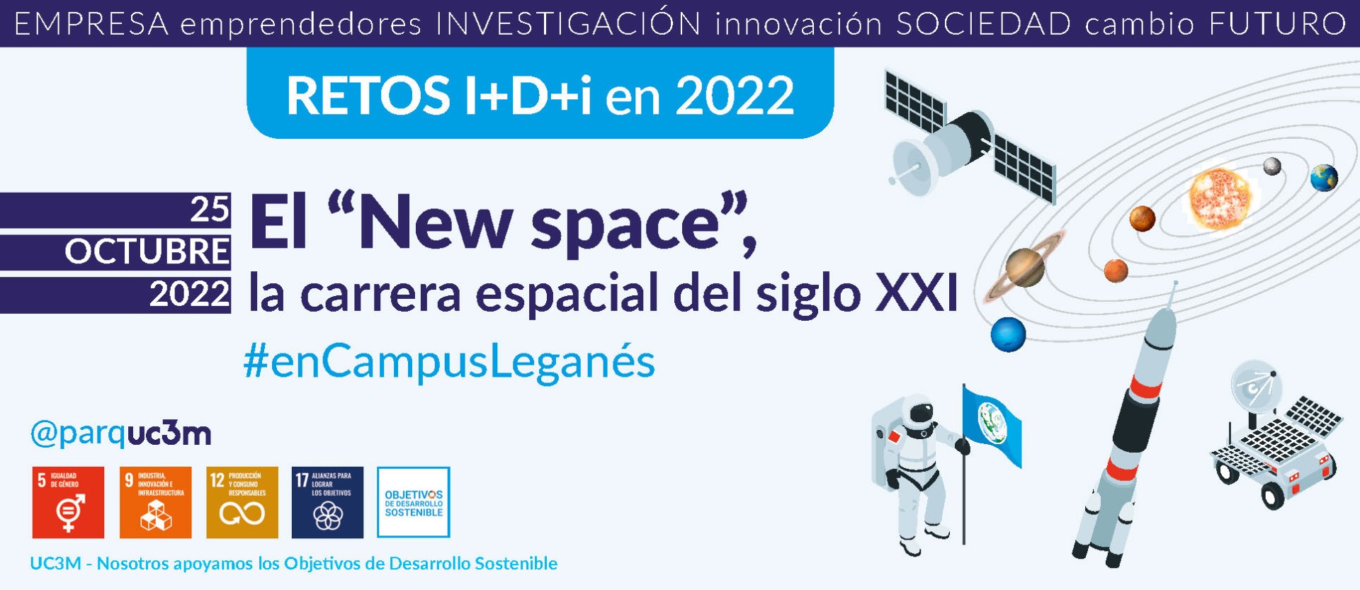 Uno de los 10 Retos de I+D para innovar juntos en este año 2022 es el reto del El New Space, la carrera espacial del siglo XXI, reto que enunciamos el pasado 31 de marzo en el Parque Científico UC3M, pero que en esta ocasión abordaremos ampliamente, ya que esta temática coincide con una de nuestras áreas de conocimiento, máster, varios grupos de investigación de diferentes disciplinas, y con un sector amplio de startups en el marco del programa ESA BIC Comunidad de Madrid.