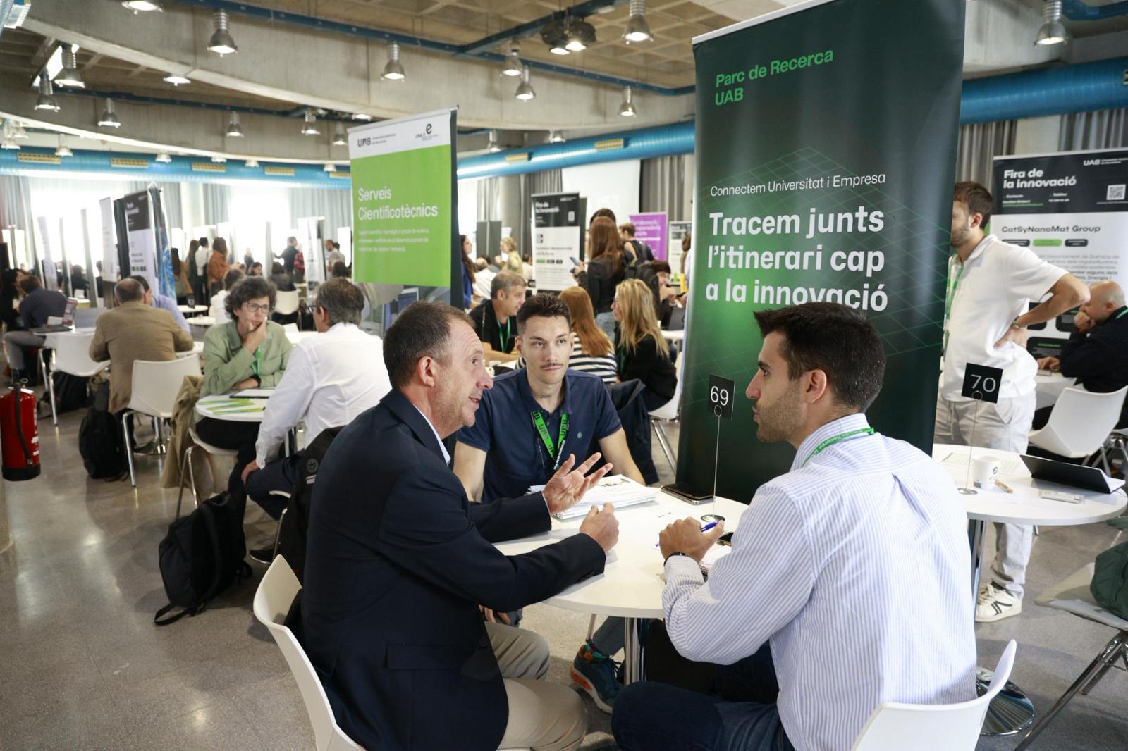 El mismo martes por la tarde también tuvo lugar el encuentro Emprèn UAB: Generando Spin-offs y Start-ups desde la Universidad, que reunió empresas derivadas de la Universidad, alumnado, emprendedores, entidades e inversores para intercambiar experiencias. El incluyó una mesa redonda sobre inversión “early stage” y proyectos emergentes de la UAB como OPTICmizing, TECOUS, BrainMapp y HeliCure realizaron pitchs y expusieron sus soluciones innovadoras en campos como la tecnología óptica, la biomedicina, y la salud digital.