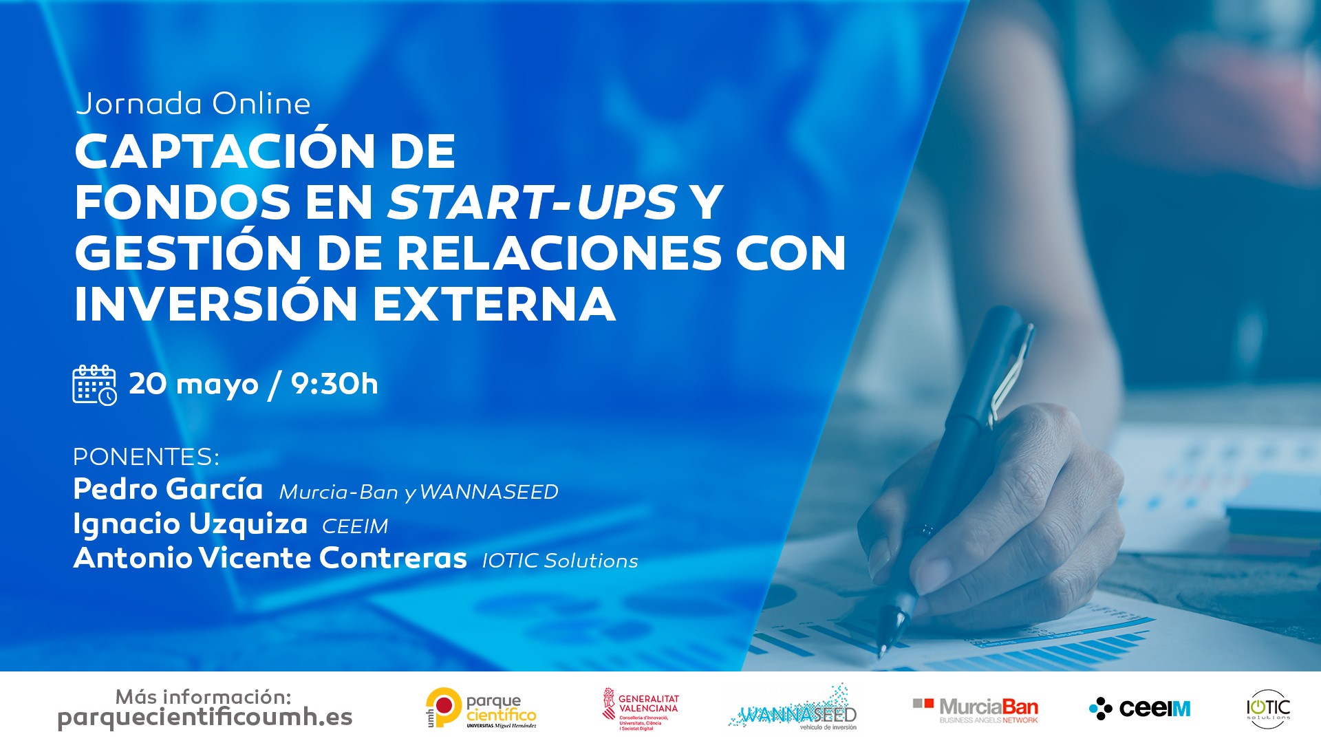 Analizar los detalles del ecosistema de los fondos de inversión y conocer herramientas para la financiación de proyectos en fase semilla o de validación. Este es el objetivo de la jornada online que ha organizado el jueves 20 de mayo el Parque Científico de la Universidad Miguel Hernández (PCUMH) de Elche. Expertos del sector serán los encargados de impartir esta sesión, que tendrá lugar a las 09:30 horas y qué está principalmente dirigida a emprendedores, empresas innovadoras, start-ups, spin-offs o investigadores interesados en la financiación e inversión de proyectos en fase semilla. La asistencia es gratuita y está abierta al público en general, previa inscripción en https://parquecientificoumh.es/es/captacion-de-fondos-en-start-ups-y-gestion-de-relaciones-con-inversion-externa.