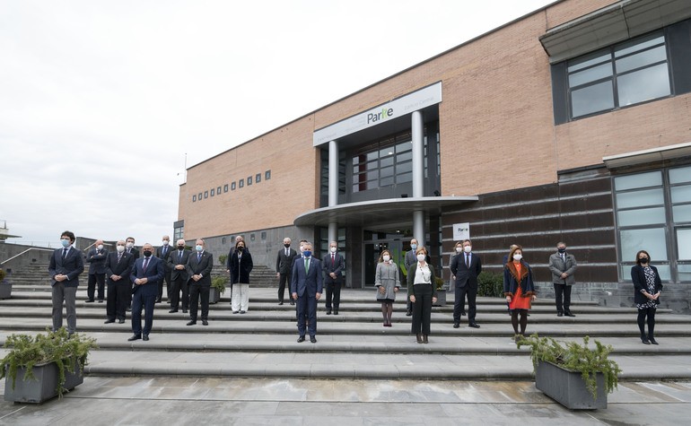 El lehendakari Iñigo Urkullu ha presidido el acto de colocación de primera piedra acompañado por el diputado general de Bizkaia, Unai Rementeria, y las empresas que van a desarrollar actividades de I+D+i en el futuro Energy Intelligence Center