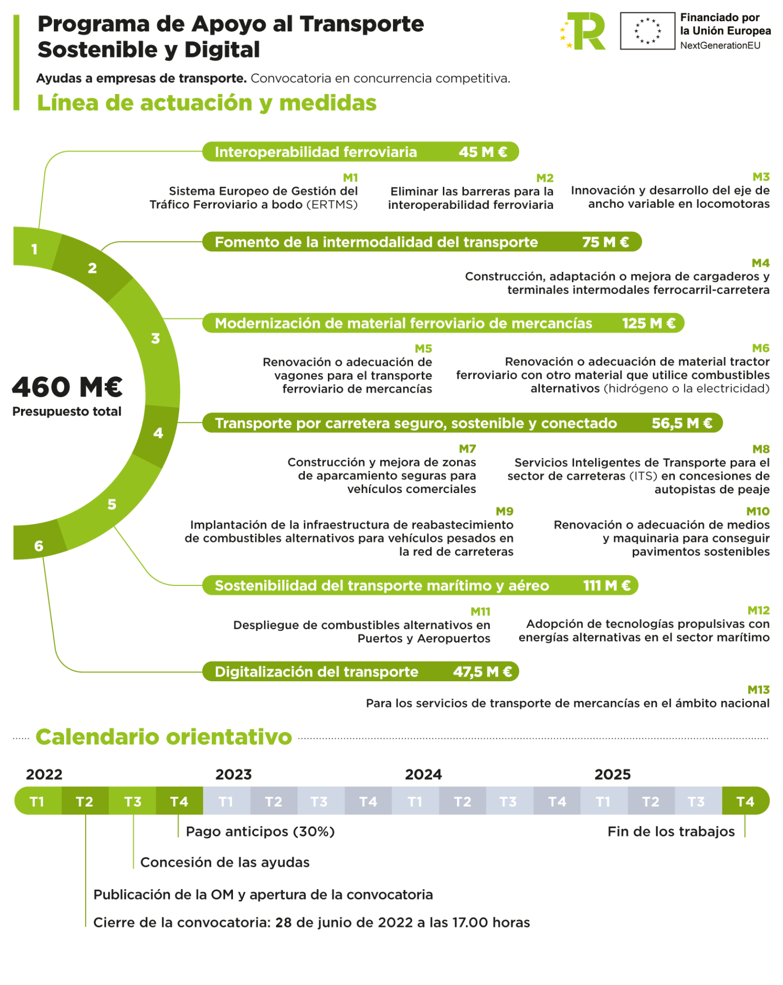 A través de la presente convocatoria, el Ministerio de Transportes, Movilidad y Agenda Urbana, distribuirá 460 millones de euros en ayudas de los fondos europeos de recuperación.