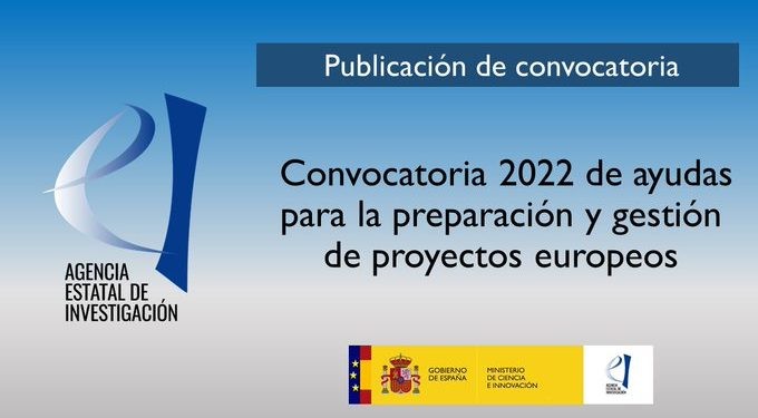 La Agencia Estatal de Investigación ha publicado la convocatoria de ayudas del año 2022 para la preparación y gestión de proyectos europeos, que se enmarca en el Plan Estatal de Investigación Científica y Técnica y de Innovación 2021-2023.