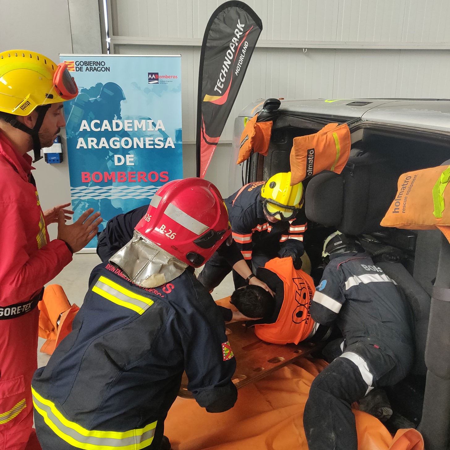 Las instalaciones de TechnoPark MotorLand, en el complejo de MotorLand Aragón de Alcañiz (Teruel) han puesto de manifiesto una vez más su atractivo para llevar a cabo actividades de investigación y formación relacionada con la seguridad vial. Durante tres días han acogido las jornadas formativas promovidas por la Academia Aragonesa de Bomberos y la Asociación Profesional de Rescate en Accidentes de Tráfico (APRAT), en las que han tomado parte 150 alumnos, entre bomberos y sanitarios. El curso, basado en el manual creado por la Dirección General de Tráfico (DGT) y APRAT sobre Procedimiento Unificado de Rescate en Accidentes de Tráfico, ha combinado clases teóricas con ejercicios prácticos sobre, por ejemplo, la inmovilización de los vehículos afectados para que los profesionales puedan trabajar con seguridad, la apertura de los mismos y la extracción de las víctimas atrapadas en su interior.