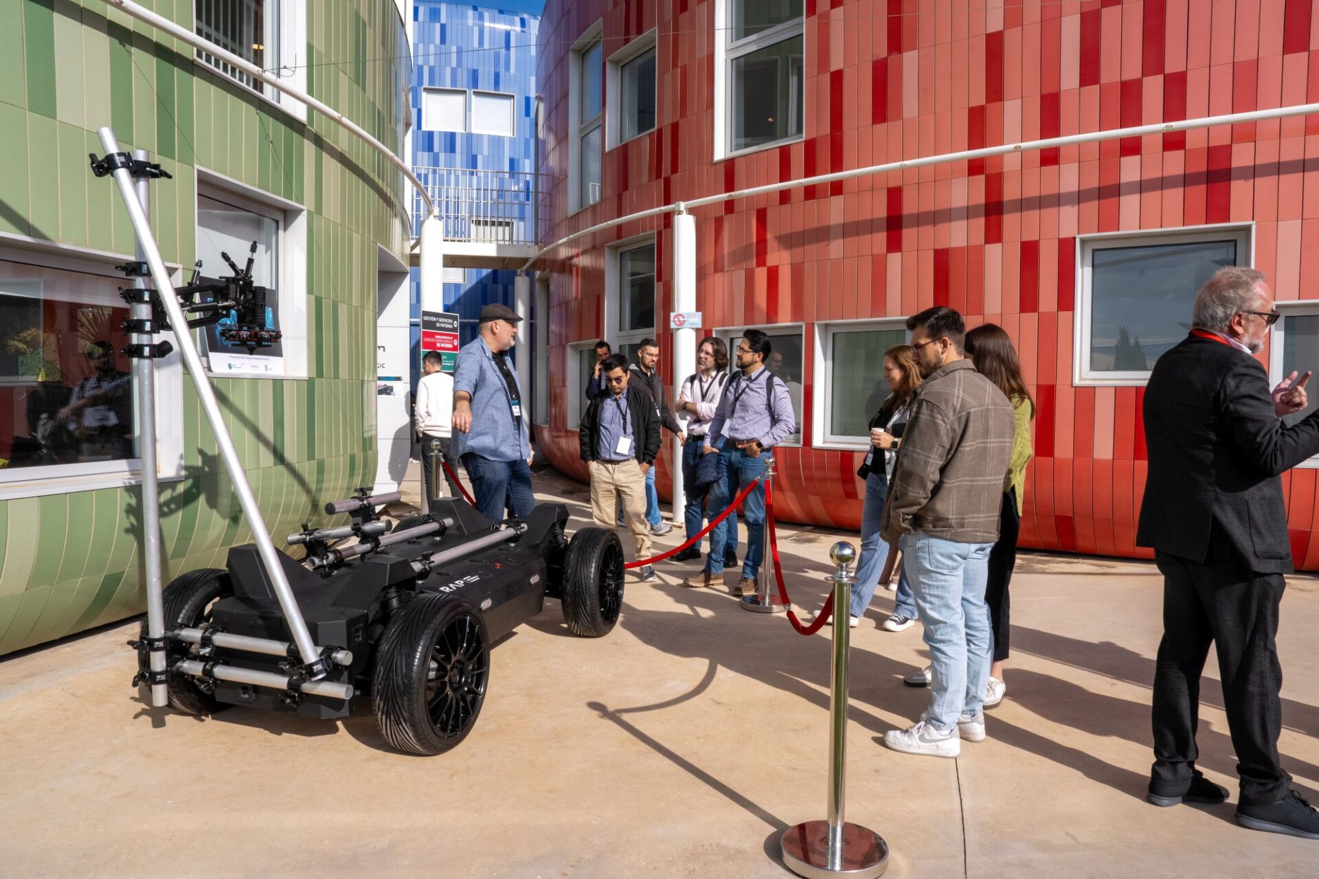 A su lado, compañías ya consolidadas en el Parque Tecnológico desplegaron demostraciones en vivo de sus desarrollos más avanzados. Forvia sorprendió con un prototipo que adelanta innovaciones aún por llegar a los automóviles de calle, combinando nuevos materiales sostenibles con una experiencia de conducción diferente. Duna Labs aportó un vehículo a escala real capaz de circular sin conductor, teleoperado mediante tecnología 5G, mientras Robotnik aportó sus aplicaciones robóticas basadas en plataformas móviles y brazos manipuladores.