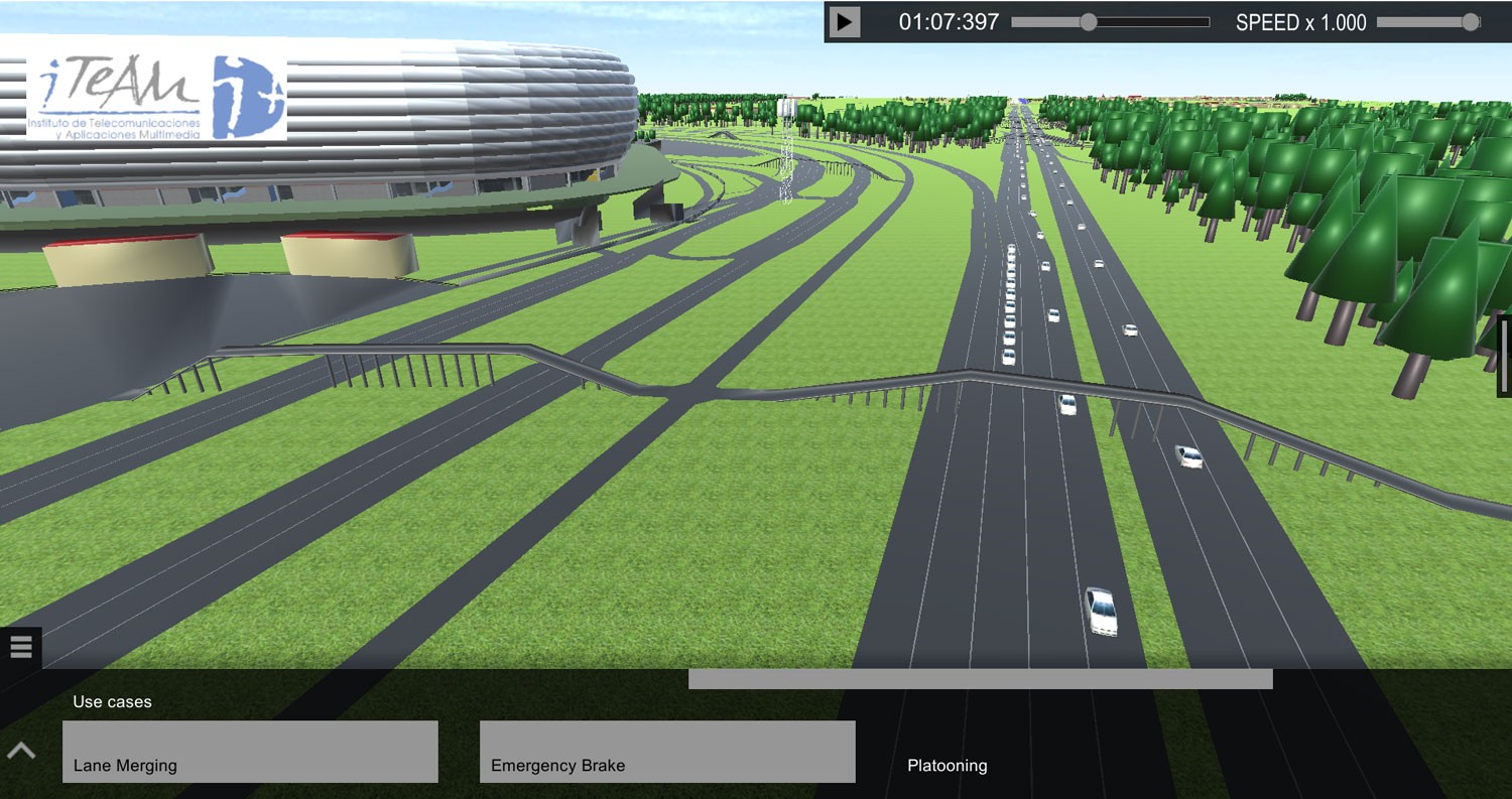 En el marco de este proyecto, se llevarán a cabo diferentes simulaciones en las que se caracterizará el funcionamiento individual de los vehículos y posteriormente el que tendría ya en una autopista. Desde el iTEAM de la UPV, se realizará la emulación de un escenario en el que muchos o todos los vehículos sean autónomos, para así poder diseñar un sistema que funcione bajo cualquier premisa. Se analizarán variables como el tiempo de latencia/respuesta de los vehículos, la conectividad entre los distintos usuarios o los tiempos de respuesta ante distintas condiciones climáticas, entre otros.