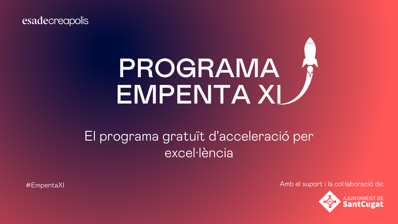Empieza la cuenta atrás para dar per donar comienzo a la 11ª Edición del Programa Empenta XI, el programa gratuito de aceleración de startups de base tecnològica, de fins a 3 anys de vida i amb un fort component innovador, impulsado por Esade Creapolis con el apoyo y la colaboración del Ajuntament de Sant Cugat.
