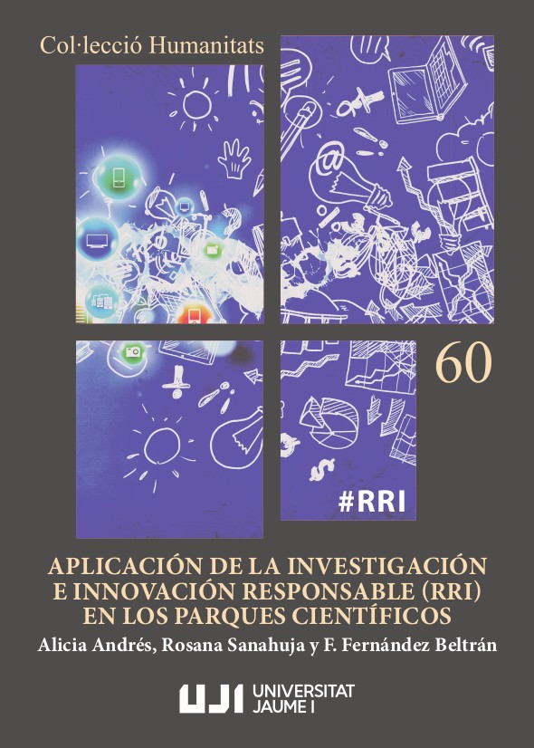 Publicacions de la Universitat Jaume I ha incorporado a la colección «Humanitats» el libro Aplicación de la Investigación e Innovación Responsable (RRI) en los parques científicos, de Alicia Andrés, Rosana Sanahuja y Francisco Fernández Beltrán. La publicación, disponible en abierto, recoge las acciones desarrolladas y los resultados obtenidos en el proyecto «Hacia una innovación responsable: los parques científicos como motor de cambio», impulsado por el Vicerrectorado de Investigación y Transferencia de la Universitat Jaume I, a través de la Unidad de Cultura Científica y de la Innovación del Servicio de Comunicación y Publicaciones.